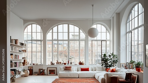 Bright Loft Apartment with Arch Windows and Modern Furniture