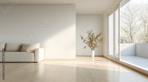 Bright Minimalist Living Room with Sofa and Sunlight, Showcasing Modern Home Decor and Interior Design