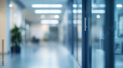 Bright, modern hallway with large windows and shiny floor modern bright office hallway with large windows and shiny floor.