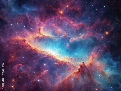 Bright Nebula Surrounded by Colorful Cosmic Clouds in Deep Space