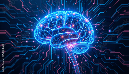 Bright Neon Blue Profile of a Human Head with a Glowy Brain