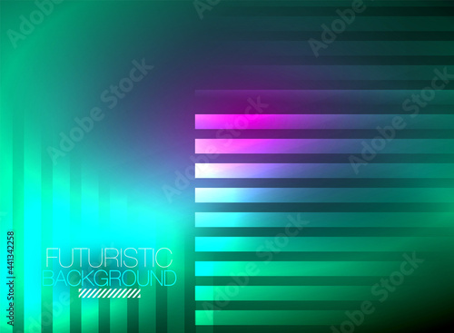 Bright neon color techno abstract background, shiny glowing neon lines in the dark background
