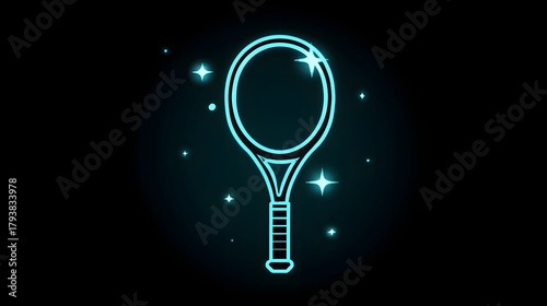 Bright neon outline of a sports implement glows against a dark background with sparkling accents