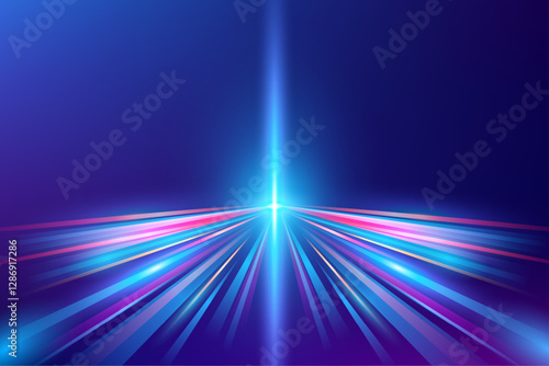 Bright neon rays in blue and pink shades create a futuristic speed motion effect