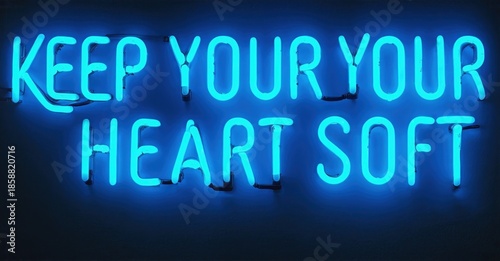 Bright neon sign displays message. Blue light glows against dark background. Positive affirmation, simple design.