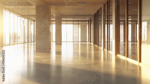 Bright Open Space in Modern Office with Abstract Light Effects