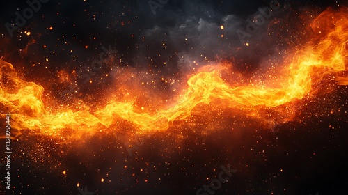 Bright orange and yellow flames glowing with heat against a dark black surface
