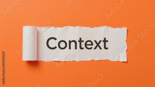 Bright orange backdrop highlights the word context on torn paper, leaving ample space for writing.