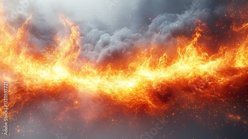 Bright orange flames billow with thick black smoke against white, conveying danger, destruction, and intense energy.