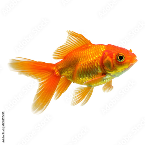 Bright Orange Goldfish Swimming Side View