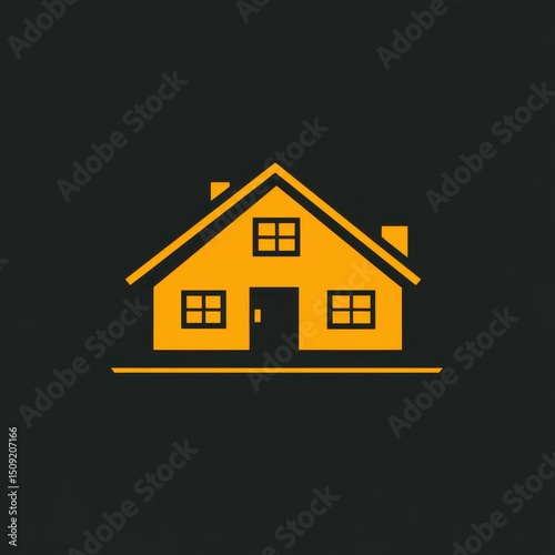 Bright orange house silhouette against a black background representing home, comfort, and stability in modern design