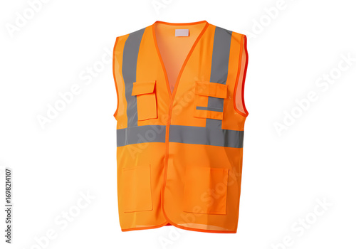Bright Orange Safety Vest with Reflective Stripes Enhanced Visibility for Workers isolated on transparent background