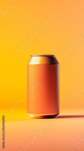 Bright orange soda can against a vibrant orange backdrop in vertical orientation