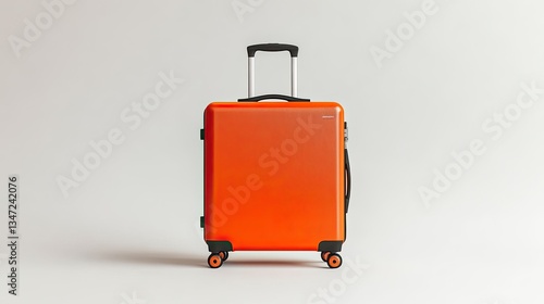 Bright orange suitcase placed on a pristine white background, perfect for showcasing travel essentials. --