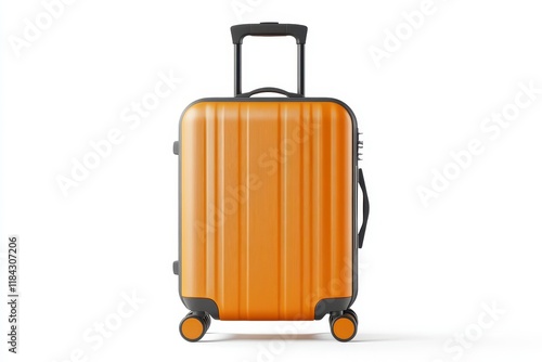Bright orange suitcase ready for travel adventures at the airport terminal on a sunny day