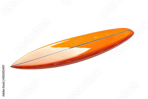 Bright orange surfboard resting on a clean white surface, displaying sleek design and vibrant color