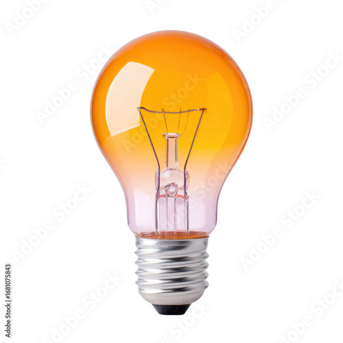 Bright Orange Vintage Light Bulb Glowing Against a White Background, Symbol of Creativity and Inspiration