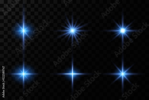 Bright particles, burning blue lights, stars, lasers. Vector.