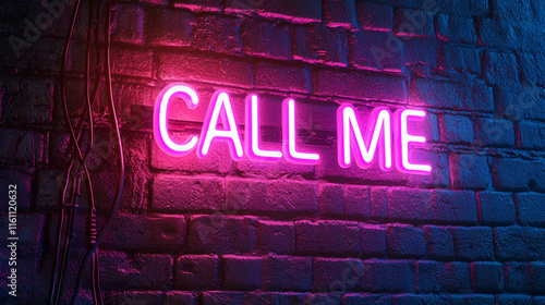 Bright pink neon letters spelling 'Call Me' on a brick wall.
