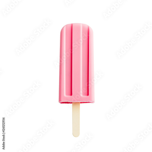 Bright pink popsicle ice cream on a wooden stick isolated on a white or transparent background