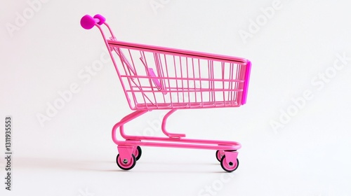 Bright pink shopping cart supermarket photo capture urban environment side view shopping experience