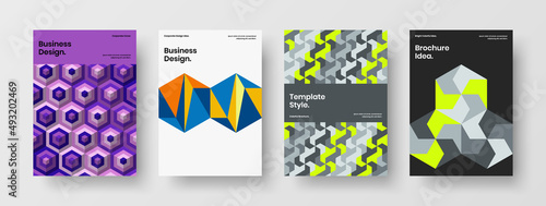Bright poster A4 design vector concept set. Amazing mosaic shapes handbill template composition.