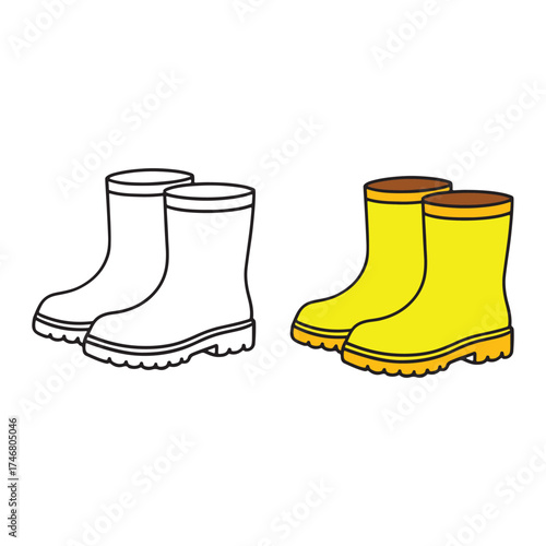 Bright rain boots outline illustration for coloring. Great for kids’ fashion-themed coloring pages, weather crafts, and printable art activities.