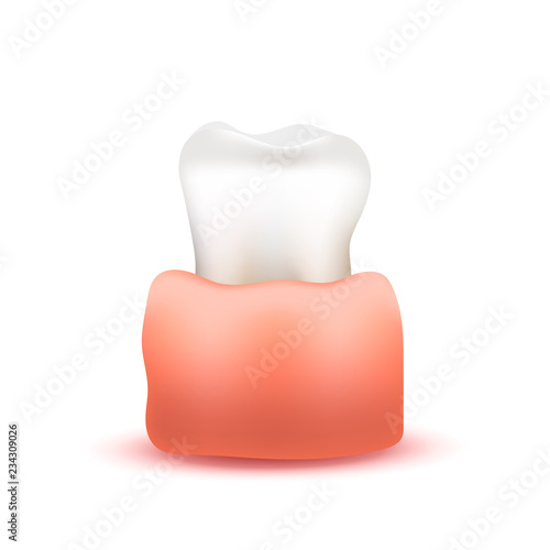 Bright realistic tooth in gum, dental treatment concept isolated on white