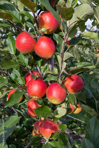 Bright red apples in a plantation just before harvest