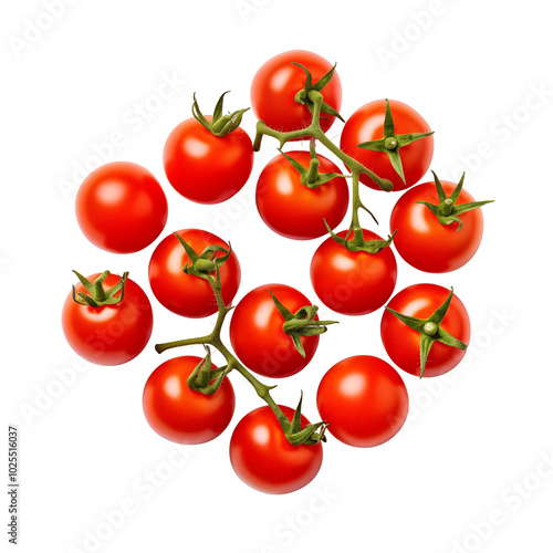 Bright Red Cherry Tomatoes On The Vine Arranged On A Transparent Background