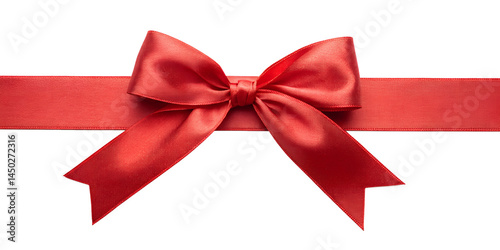bright red color satin ribbon with bow isolated on white background png