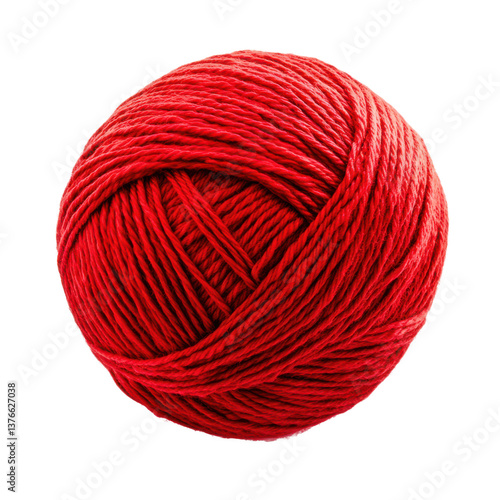 Bright red crochet yarn ball on transparent background