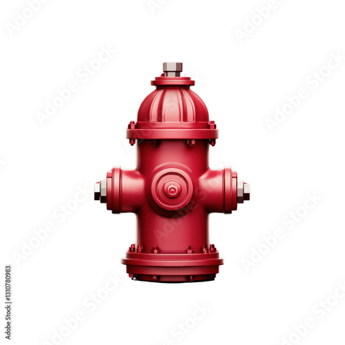 Bright Red Fire Hydrant Isolated on White Background with Details