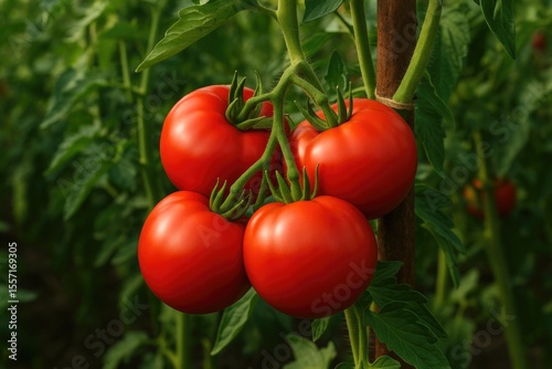Bright red tomatoes maturing on the plant