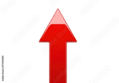 Bright red upward arrow symbol with glossy finish isolated on transparent background