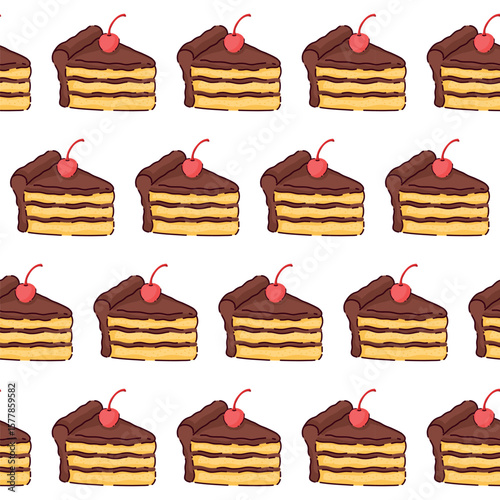 Bright seamless pattern with sweet pastries. Doodle stickers. For textiles, brand, clothing, wallpaper. Kitchen design, restaurants and menus