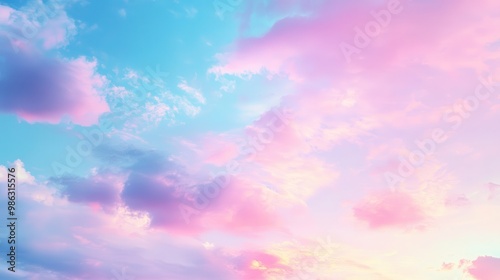 Bright sky with soft pastel tones blending from blue to pink at sunset