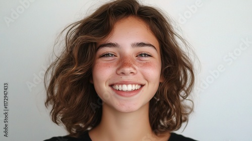 Bright Smiling Young Woman with Natural Curly Hair Close Up