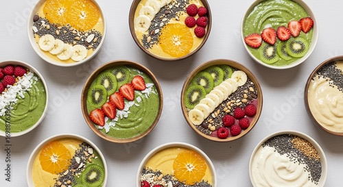 Bright Smoothie Bowls with Fresh Fruits and Seeds for Healthy Eating