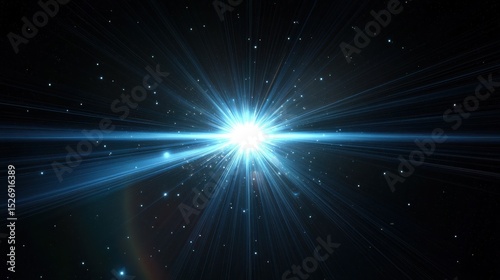 Bright Star Burst: Captivating Lens Flare Effect on Black Background, Stunning Light Rays, Celestial Glow, Dramatic Lighting, Stock Photo
