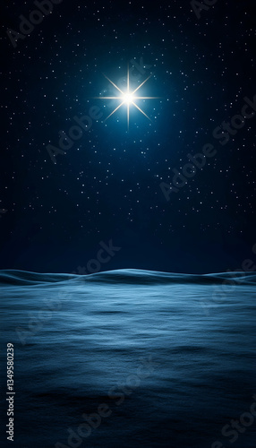 Bright star shining over a calm, dark landscape at night