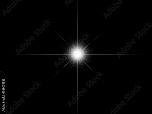 Bright stellar object with diffraction spikes and lens flare in deep space