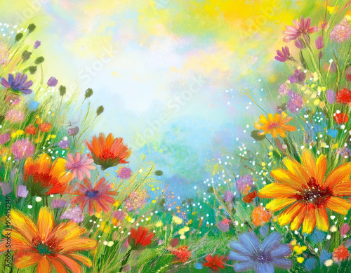 Bright Summer Floral Art Illustration Flowers Background with Copy Space for Advertising Text