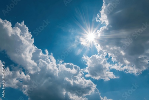 Bright Sun Shines Behind White Clouds on a Summer Day