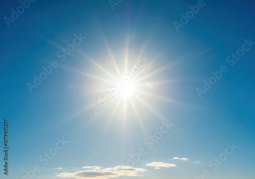 Bright sun shining in a clear blue sky with a hint of clouds. A scene of a sunny day, creating a sense of warmth and brightness