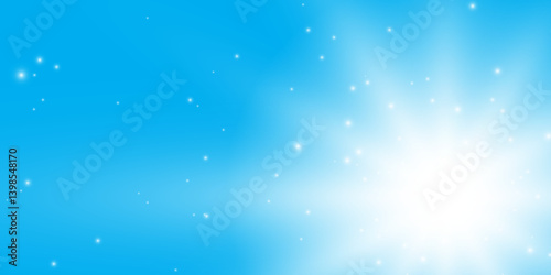 Bright Sunburst on Blue Sky Background, Radiant Light Effect on Clear Blue Background.