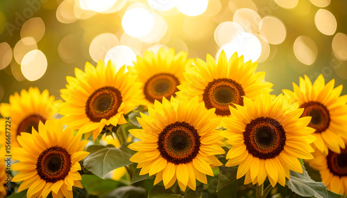 Bright sunflower cluster with soft bokeh highlights creates dreamy background, evoking warmth and joy in nature beauty