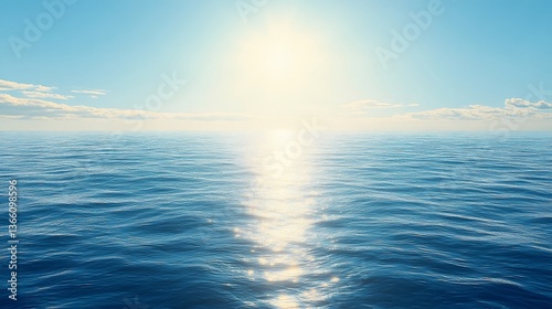 Bright sunlight reflecting on calm blue ocean under cloudy sky