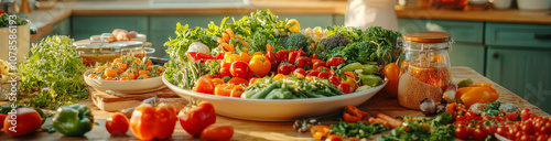 Bright Sunlit Kitchen with Cheerful Decor and Fresh Ingredients for a Welcoming Culinary Experience