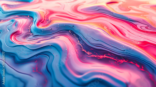 Bright Swirls in Pink and Blue, Abstract Liquid Art, Decorative Marble Pattern on Silk Fabric Background